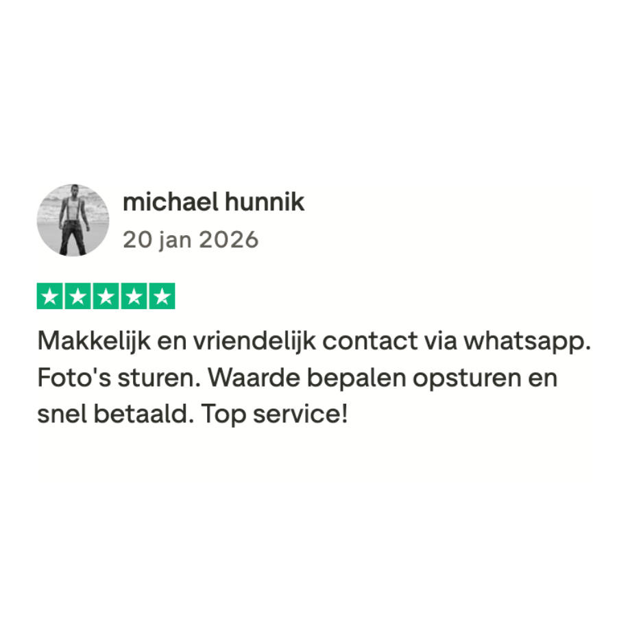 Ontvang 75% tot 85% van de huidige marktwaarde direct op jouw rekening. Zowel opsturen als afleveren/langsbrengen is mogelijk.